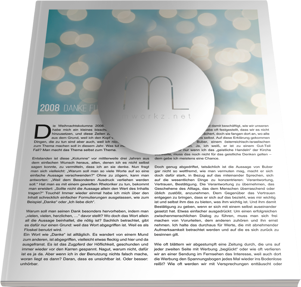 Die Weihnachtskolumne 2008. Ich muss zugeben, ich habe mich ein kleines bisschen davor gedrückt, mich hinzusetzen, und diese Zeilen zu schreiben. Vor allem aus dem Grund, weil ich den Kopf voll habe, mit tausend Dingen, die zu tun sind aber auch, weil ich nicht wusste, was ich zum Thema machen soll in diesem Jahr. Was tut man in so einem Fall? Man macht das Thema selbst zum Thema.