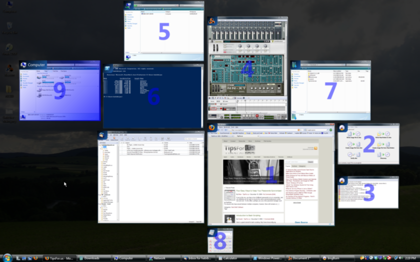 Soweit ich weiß, kommt diese Funktion ursprünglich vom Mac und nennt sich dort Exposé. Per Tastendruck werden alle geöffneten und minimierten Fenster in einer Übersicht nebeneinander angeordnet, so dass man schnell auf visuellem Wege das richtige aussuchen kann. Windows selbst hat soetwas nicht eingebaut – stattdessen bekam man ab Windows Vista das Flip3D-Karussell, das alle geöffneten Fenster anzeigte oder eine Vorschau der Fenster in einer Reihe nebeneinander, wenn man Alt+Tab drückte.