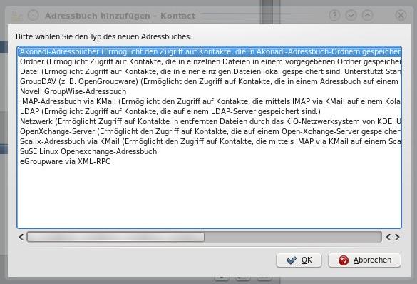 Ubuntu benutzt als zentrales PIM-Programm Evolution und bei dem ist es (Gottseidank) recht einfach, auf die Google-Ressourcen zuzugreifen. Kubuntu will natürlich anders sein und verwendet entsprechend auch was anderes, nämlich Kontact (bei mir v. 4.3.2). Ich muss an alle Unwissenden gleich eine Warnung raushauen: Das Teil ist ziemlich mächtig! Mal so als Vergleich: