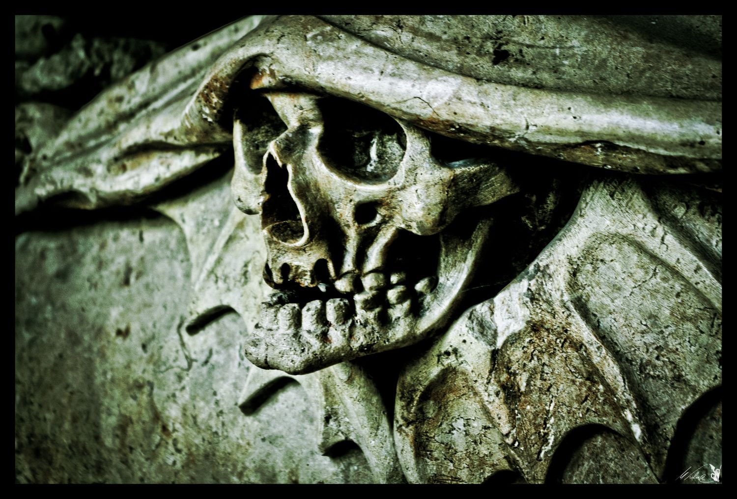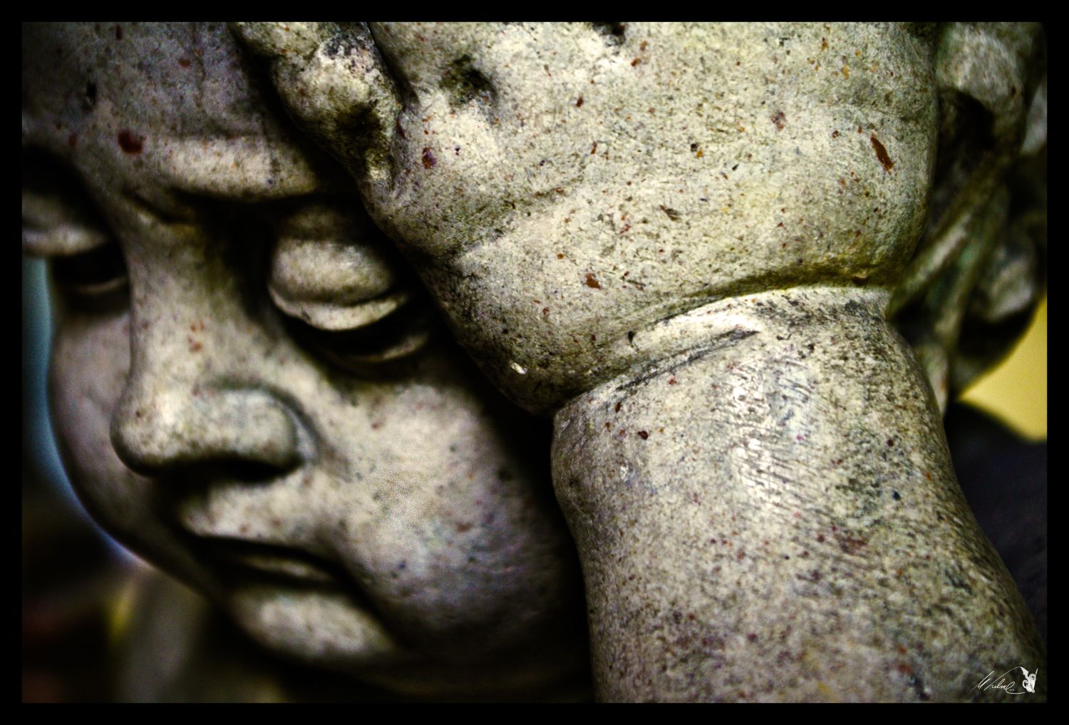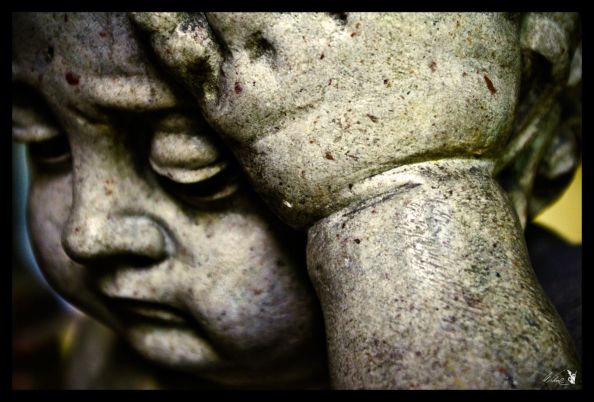 Aufgenommen wurden beide Bilder in Salzburg in einem Innenhof einer großen Kirche. Es handelt sich um „Verzierungen“ für Gräberplatten. Die Nahaufnahme des Kindes hat Sarah gemacht, das andere Foto habe ich geschossen und beide schließlich bearbeitet.