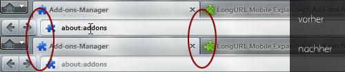 Seltsamerweise überlagert der transparente Firefox-Button im Fullscreen-Modus das erste Tab. Irgendwie störend, darum folgende Änderungen im Code. Geht in Zeile 278 (der Abschnitt beginnt mit ‚/*MenuButton*/‘):