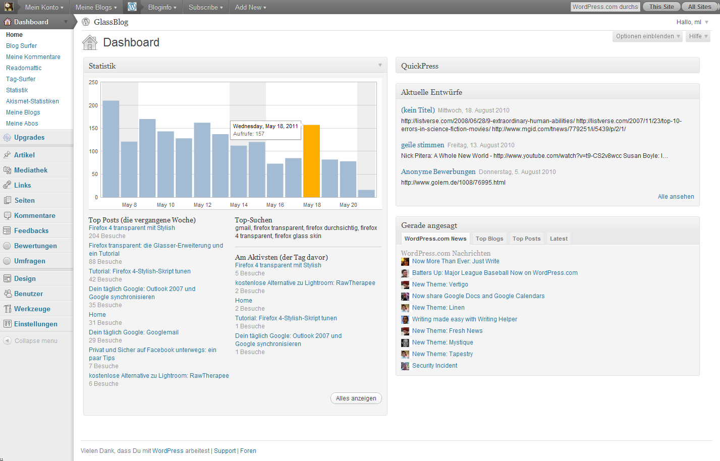 Über das Thema habe ich mir schon seit Längerem Gedanken gemacht. Heute, wo ich ohnehin etwas darüber schreiben wollte, gibts ein paar Updates von wordpress.com, die genau in diese Kerbe schlagen und meine Meinung noch bestätigt.
