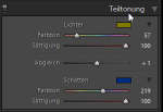 Hier nochmal die Einstellungen des Teiltonungs-Panels aus Lightroom.