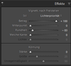 Mit dem Panel „Effekte“ spielen wir ein wenig herum und bekommen so etwas wie eine Vignettierung, allerdings mit hartem Rand. Die innen abgerundeten Ecken vermitteln ebenfalls einen Retro-Look, wie man es vielleicht aus alten Fotoalben kennt.