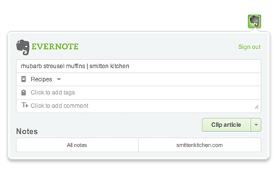 Der Webclipper ist einer der schnellsten unter den Konkurrenten. Minimal gehalten und flotter und stabiler als bei Springpad. Je nachdem, was die Erweiterung auf der Seite erkennt, lässt sich eine Vorauswahl treffen, was man ablegen will: die ganze Seite, ein Artikel oder nur eine Adresse als Lesezeichen. Genauso wie bei Springpad lassen sich über die Erweiterung auch die vorhandenen Notizen durchsuchen.