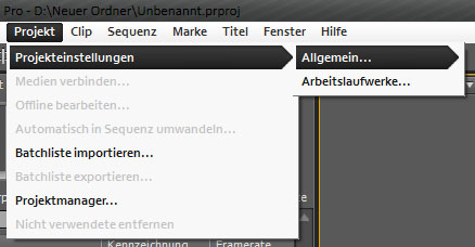 - im Menü auf Projekt klicken, dann auf Projekteinstellungen und dann auf Allgemein