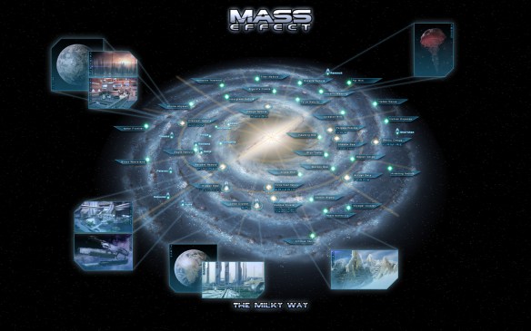 Ich werde sicherlich (falls ich genug Zeit habe) noch mehr zu dem Game schreiben, hier aber mal ein Tip, weil ich selbst grad auf der Suche danach war. Ich bin grade in einer Phase des Spiels, in der ich eine Menge Botengänge mache, da ich ne Menge Aufträge auf der Citadel angenommen habe. Leider stehen im Logbuch nicht immer ausreichend Details, in welchem System und auf welchem Planeten zu finden ist, was man sucht. Das bedeutet, man muss eine große Zahl Cluster abklappern, um das Richtige zu finden. Wie groß die Zahl ist, bin ich nicht ganz sicher. Jeder Cluster untergliedert sich wohl in bis zu fünf Planetensysteme, die wiederum mehrere Planeten haben. Manche Quellen sprechen von 17 Clustern, woanders habe ich 31 gezählt und eine Karte, die ich fand, zeigt sogar noch mehr.