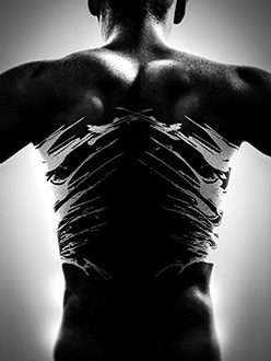 Bei der Serie „Marks“ habe ich mich mal an Halb-Aktbildern versucht. Ich mag vor allem die kontrastreiche Belichtung. Im Studio entstehen zwei Versionen eines Bildes: einmal mit Licht von hinten und leicht von der Seite. Anschließend ein zweites Mal mit dem Model gut beleuchtet. Die erste Variante kann man dann nutzen, um den Körper so unterzubelichten, dass die Haut (in Schwarzweiß) schon schwarz wird, aber Streiflicht die Partien betont.