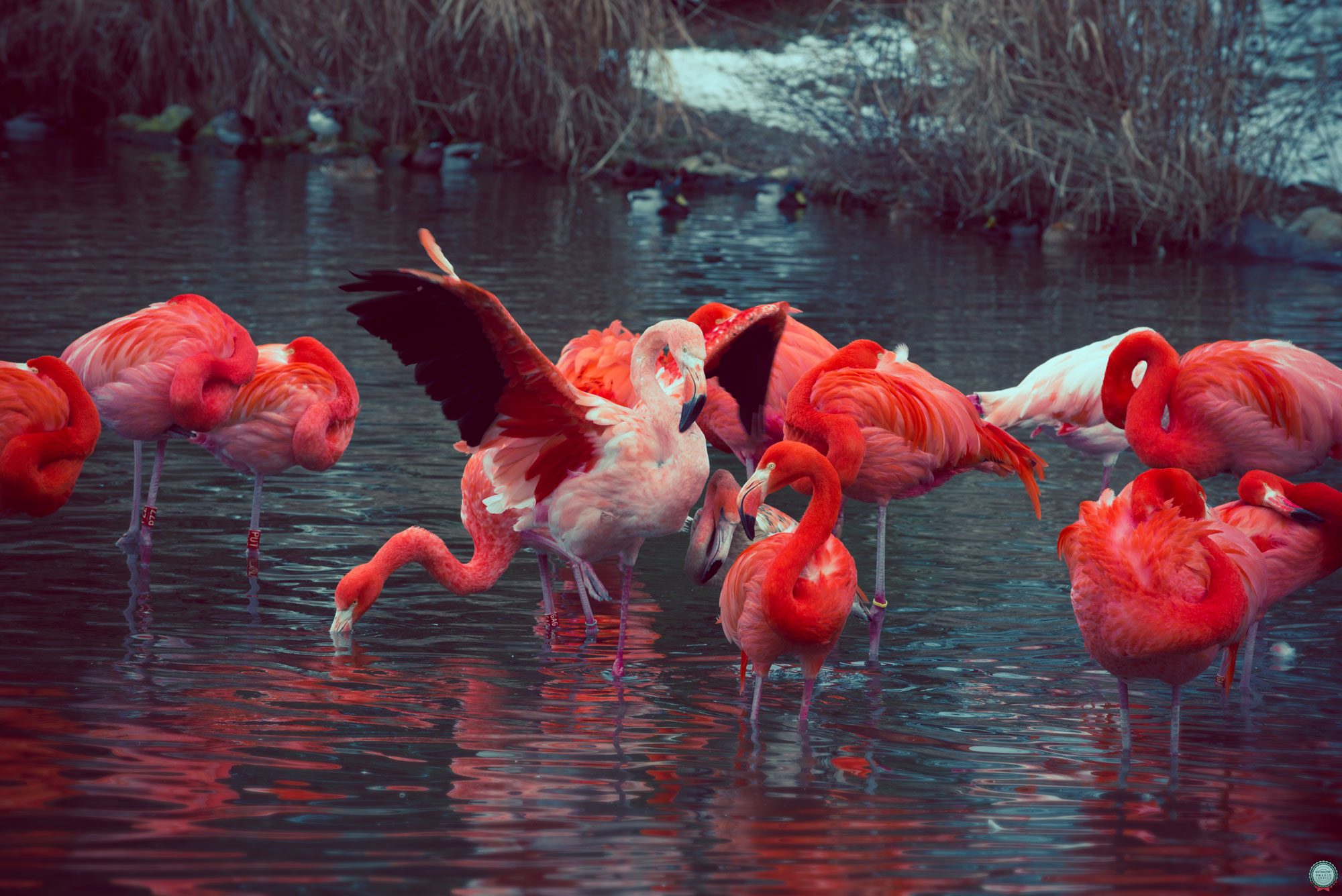 Um den Workshop zu schreiben, brauchte ich natürlich ein paar Testfotos und so habe ich mir kurzerhand ein paar Flamingo- (und Storch!) Bilder geschnappt, die ich mit einer Nikon D800 geschossen habe. Ich stehe total darauf, diese Tiere zu fotografieren, denn man kann ihre Farben wirklich klasse herausholen und verwenden, um ungewöhnliche Bildeffekte zu erzeugen. So, wie die unten.