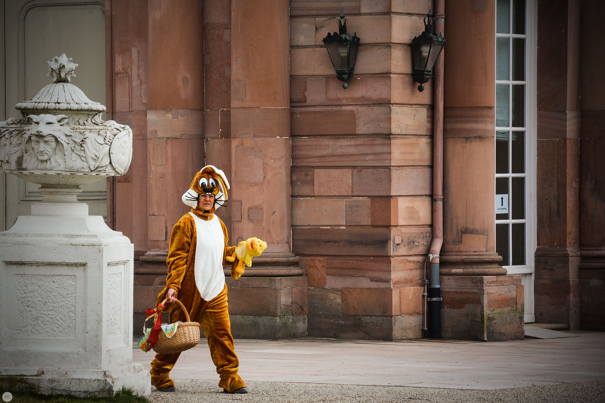 Während eines Spaziergangs im Schlosspark Schwetzingen sah ich plötzlich die seltsame Osterhasen-Kreatur. Urplötzlich tauchte sie zwischen den Beeten auf und versteckte eilig süße Gaben und bemalte Eier zwischen den Frühblühern. Das Tier war scheu und sprang sogleich weiter.