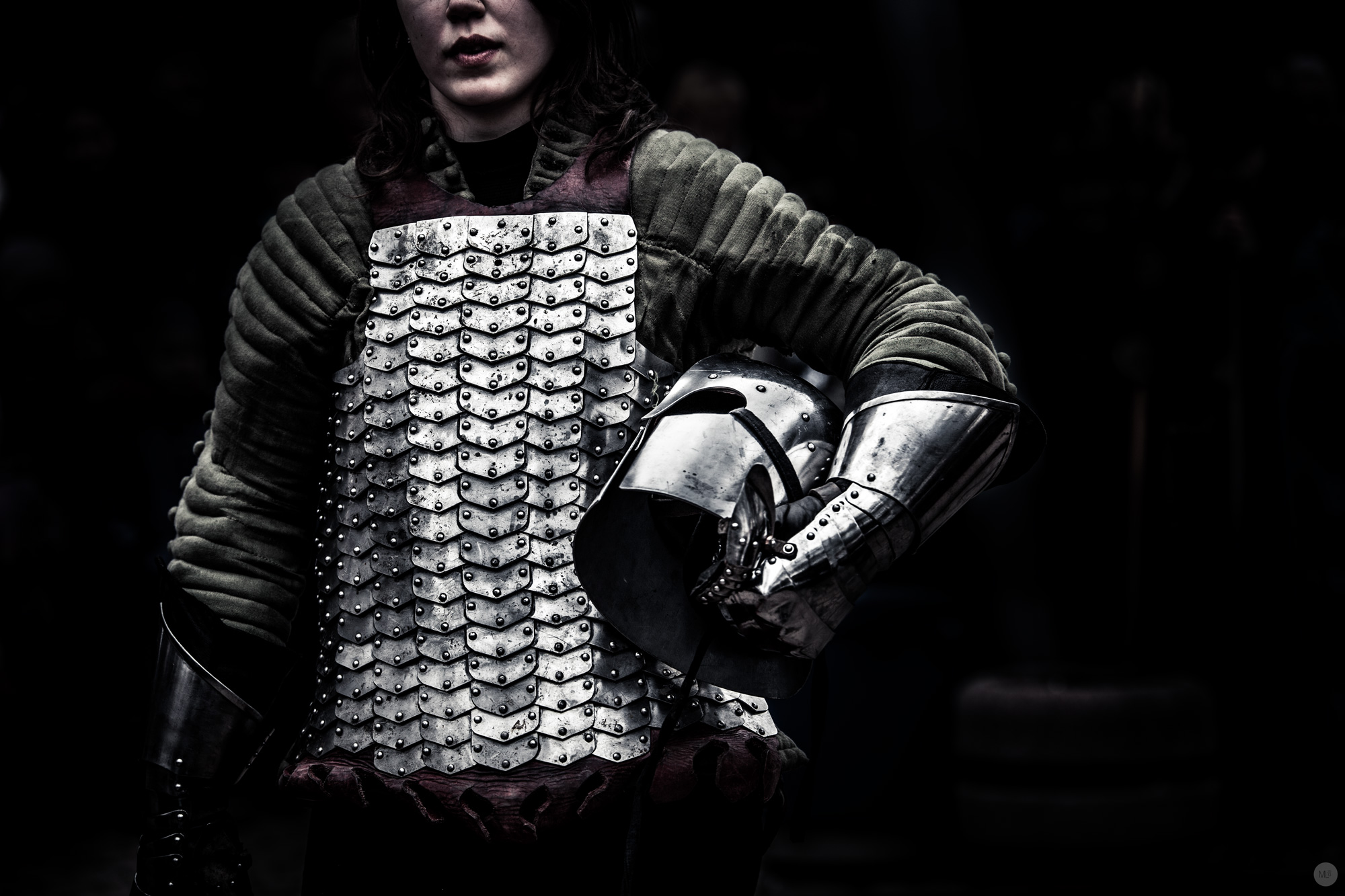 Eine gute Rüstung war ein Schatz, der den grauen Himmel in sich spiegelte und die Gewalt fern hielt. Niemand, der nicht von adligem Stand war, konnte eine komplette Rüstung auf ehrlichem Wege erlangen. Für gewöhnlich trug man Stoff und Leder darunter, um sich vor Verletzungen zu schützen. Die meisten Teile bestanden aus Holz, das mit Leder überzogen war.