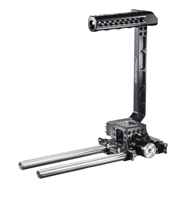 Mit dabei hatte eine Canon 700D plus Objektiv, eine 5D Mark II plus 24-105er-Zoom. Obendrauf das Walimex Pro 35/1,5 und … jetzt kommts: das Walimex Pro Mutabilis. Letzteres ist eine brandneue und mindestens genauso heiße Neuheit für Leute, die mit einer DSLR filmen wollen. Es handelt sich um ein Schulter-RIG, das „made in germany“ entwickelt wurde und dem Benutzer sagt: mach mit mir, was du willst, ich knicke sicher nicht ein.
