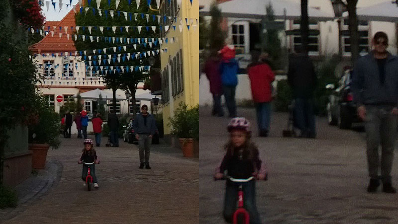 Sicher, die 100-Prozent-Ansichten der hochaufgelösten 35 MP-Fotos sehen schon sehr nach Digitalmatsch aus. Will man sie aber nicht unbedingt in Poster-Größe entwickeln, dann geht das schon klar. Dann befindet man sich auf dem Niveau kompakter Digitalkameras für nicht allzu viel Geld und kann zusätzlich noch telefonieren.