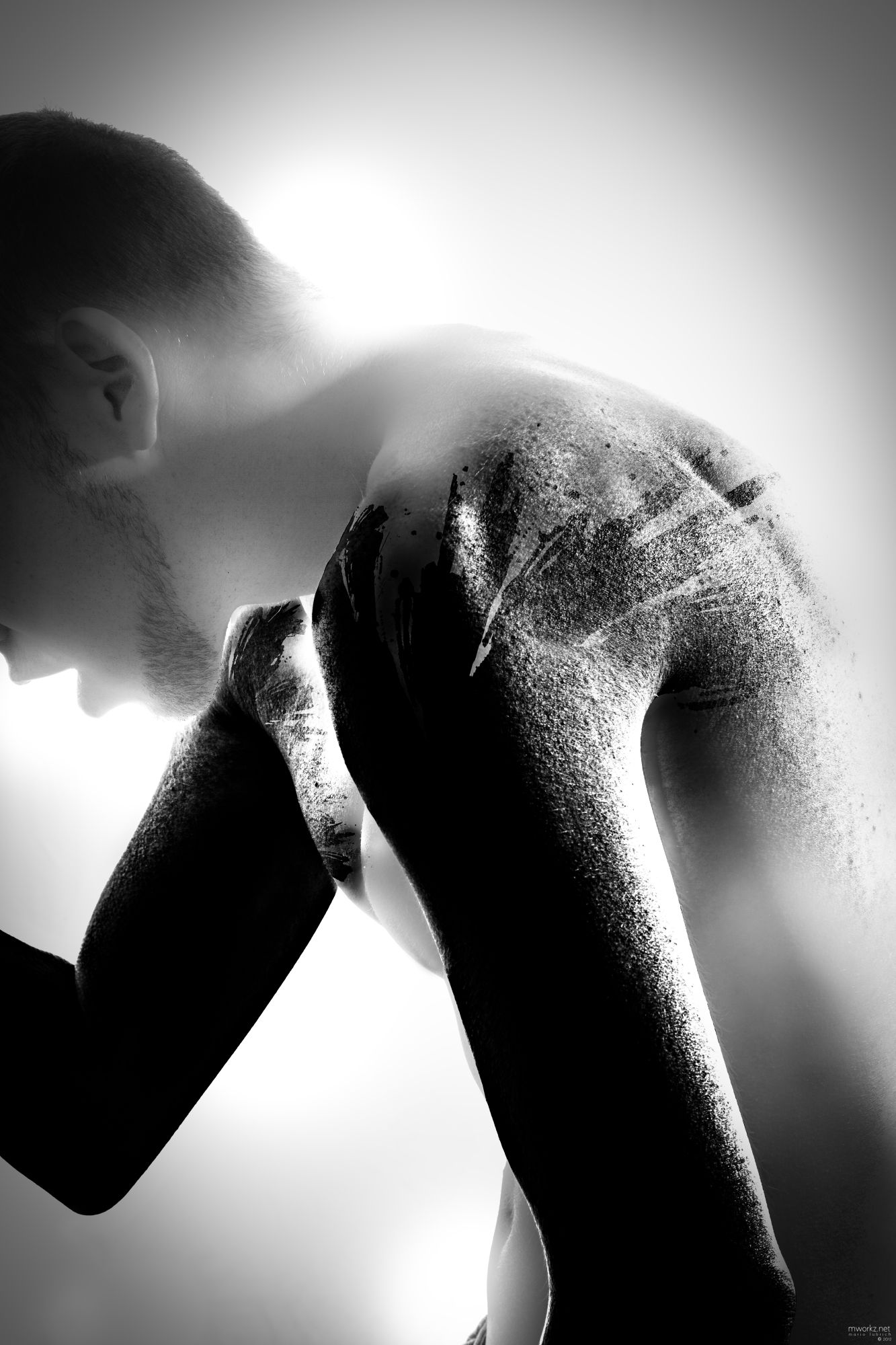 Die Idee zu einem Foto wie „wings“ hatte ich schon länger, allerdings weder Zeit und Gelegenheit, das mit einem Model zu inszenieren. Ich mag den Gegensatz zwischen den voneinander abgesetzten Körperpartien. Der Effekt meiner Wahl wäre die Verwendung von Farbe auf der Haut gewesen.
