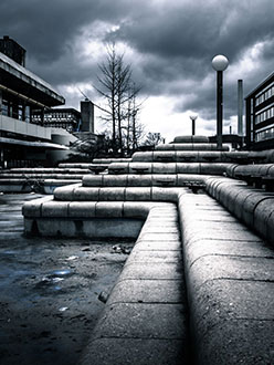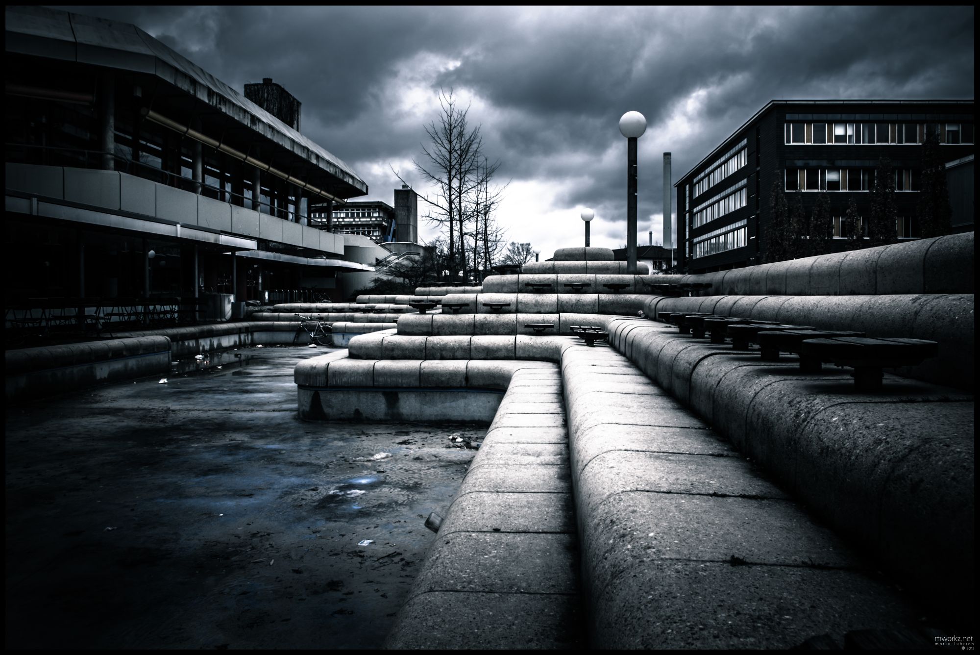 Sehr schöner Kontrast zwischen Betoneinerlei und fotografischer Dramatik.