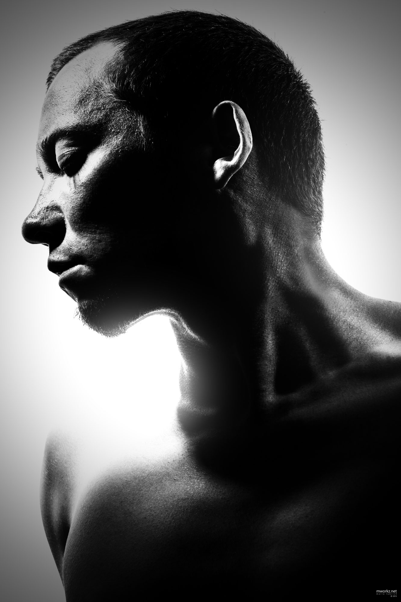 Geht man weit genug, verkommt selbst ein menschlicher Körper zu einer Ansammlung von Formen und Licht. Mich fasziniert das Erkunden der Übergänge. Ich sehe Wellen und Linien, Grenzen, an denen Weiß und Schwarz aufeinander stoßen. Weiches Licht und harte Haut. So viele vermeintliche Gegensätze, die zusammen genommen ein menschliches Antlitz ergeben.