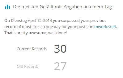 mworkz.net ist ja ein kleiner Blog und relativ unbekannt. Ich teile meine Arbeit, Ideen und Erfahrungen nur mit euch „kleinem“ Kreis. Umso mehr freuen mich kleine Erfolge und eure Resonanz. Die hat am letzten Dienstag einen neuen Rekordwert erreicht. Nämlich insgesamt 30 Likes, allein 22 davon auf „blade“