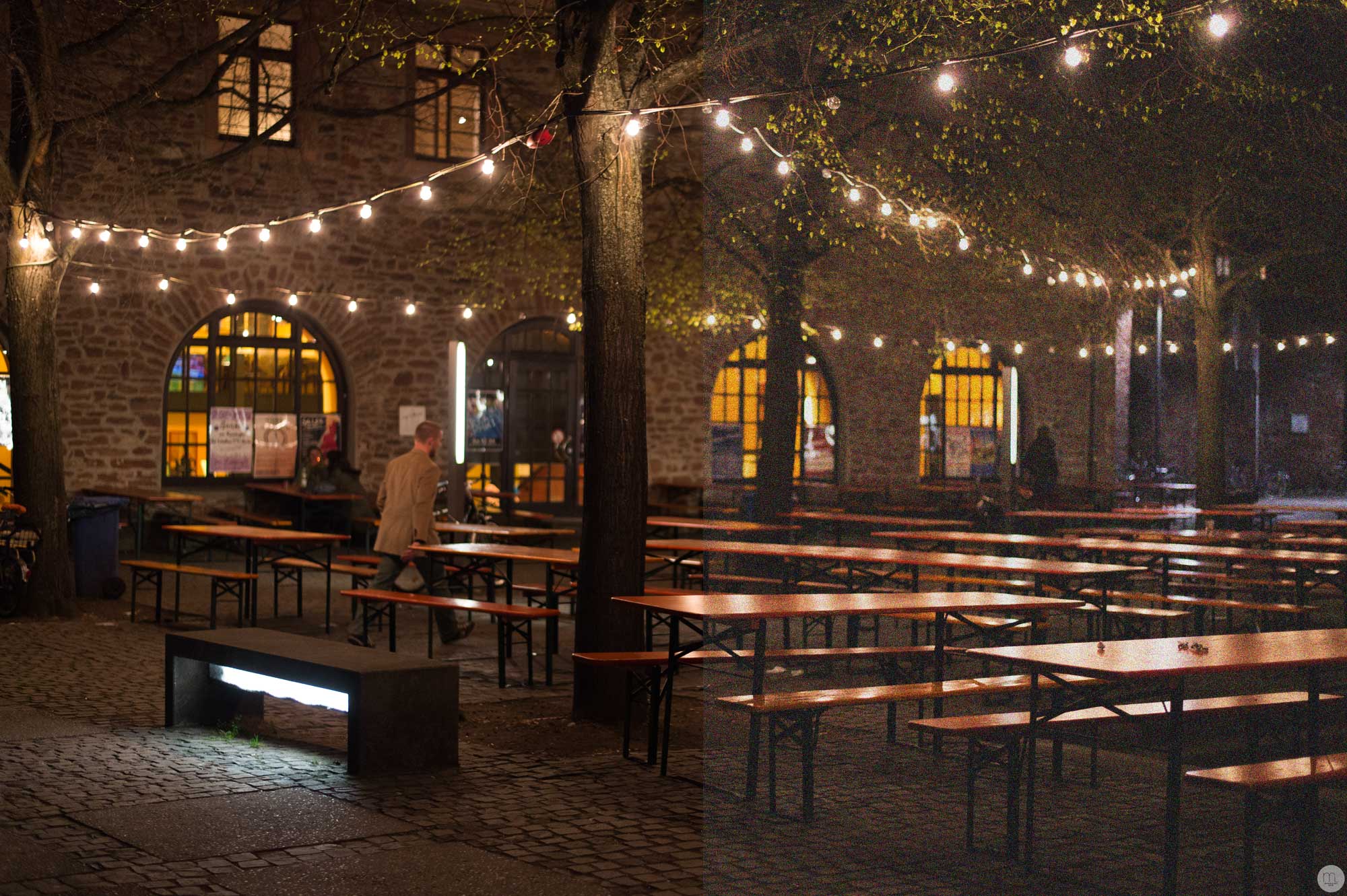 Damit die Kamera Bilder bei wenig Licht machen kann, muss der Sensor empfindlicher werden. Dazu pumpt man mehr Strom hinein – ähnlich wie beim Aufdrehen eines Verstärkers. Man hört dieses krisselige Rauschen und dasselbe passiert beim Kamerasensor, wenn eine hohe ISO-Zahl eingestellt ist.
