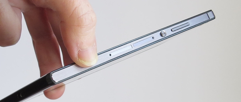 Schlanke Metalltasten gibt es nur auf der rechten Seite des Geräts. Die Lautstärkewippe kann dabei für die Kamera als Auslösetaste dienen. Sehr schick das, denn das macht das Fotografieren im Querformat erheblich einfacher und kommt an die Arbeit mit einer digitalen Kamera heran.