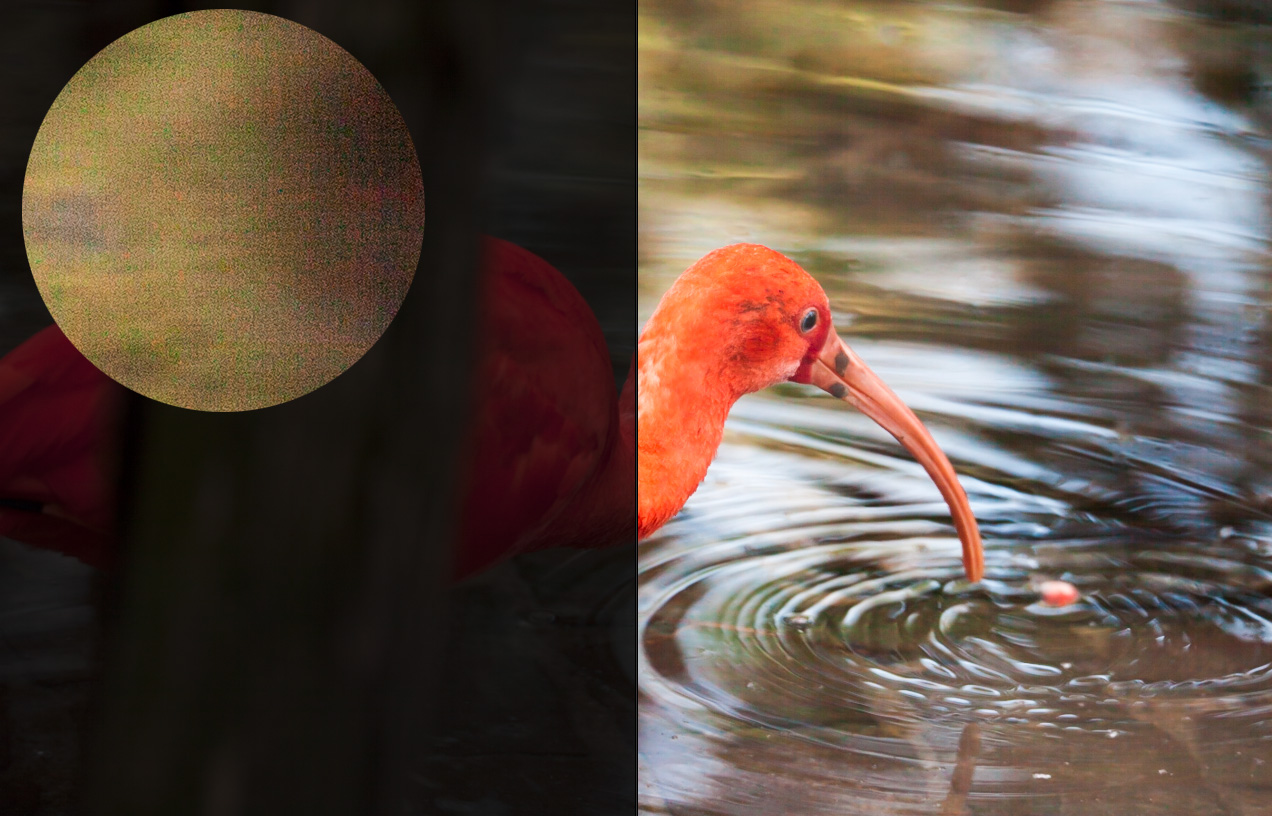 Das Bild des witzigen roten Vogels oben (sorry, Name nicht gemerkt) habe ich bei 360 Millimetern, f6,3, 1/250 Sekunde und ISO 100 aufgenommen. Hellt man das auf, kommt die gute alte EOS 5D Mark II schon ganz ordentlich ins schwitzen.