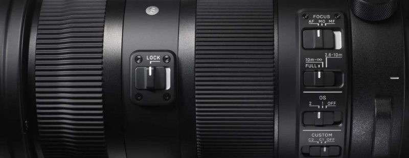 Es gibt noch mehr Spezialitäten. Neu ist auch der Zoom-Lock-Schalter, der nicht nur das ein- bzw. ausgefahrene Objektiv sperren kann, sondern auch an verschiedenen Stellungen dazwischen. Damit verhindert man, dass das schwere Kopfende ungewollt ausfährt und hat das Sigma in der bevorzugten Brennweiteneinstellung sofort einsatzbereit.