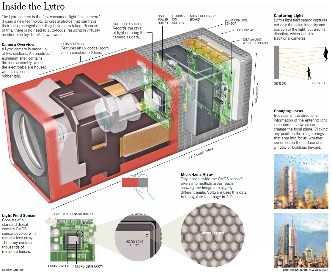Mit dieser beginnt jedoch alles erst, denn anders wie bei einer digitalen Kamera wird eine extrem hohe „Auflösung“ benötigt. Lytro zum Beispiel nennt das nicht Megapixel, sondern Megarays. Die Illum verfügt über eine Auflösung von 40 Megarays, die nötig sind, um ein zweidimensionales Bild mit einer Auflösung von etwa 4 Megapixel zu generieren. Das Unternehmen will diese Auflösung alle paar Jahre vervierfachen.