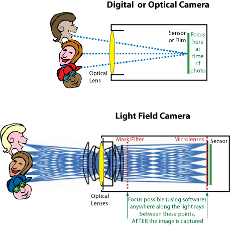 Lichtfeldkameras können in der Zukunft eine Szene so erfassen, wie sie tatsächlich stattfindet. Den Eindruck, den der Fotograf davon hatte – das Licht, die Atmosphäre, die Aufnahmeperspektive, die Farben – all das kann er auf Wunsch nachträglich anpassen und ändern. Sogar der Fokus der Kamera kann neu eingestellt werden, ohne, dass irgendetwas an den Aufnahmedaten verloren geht.