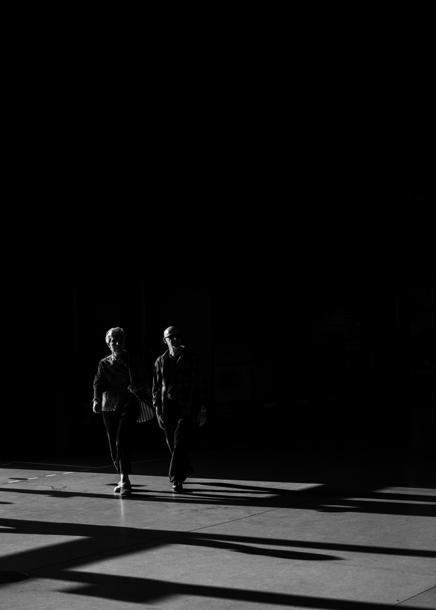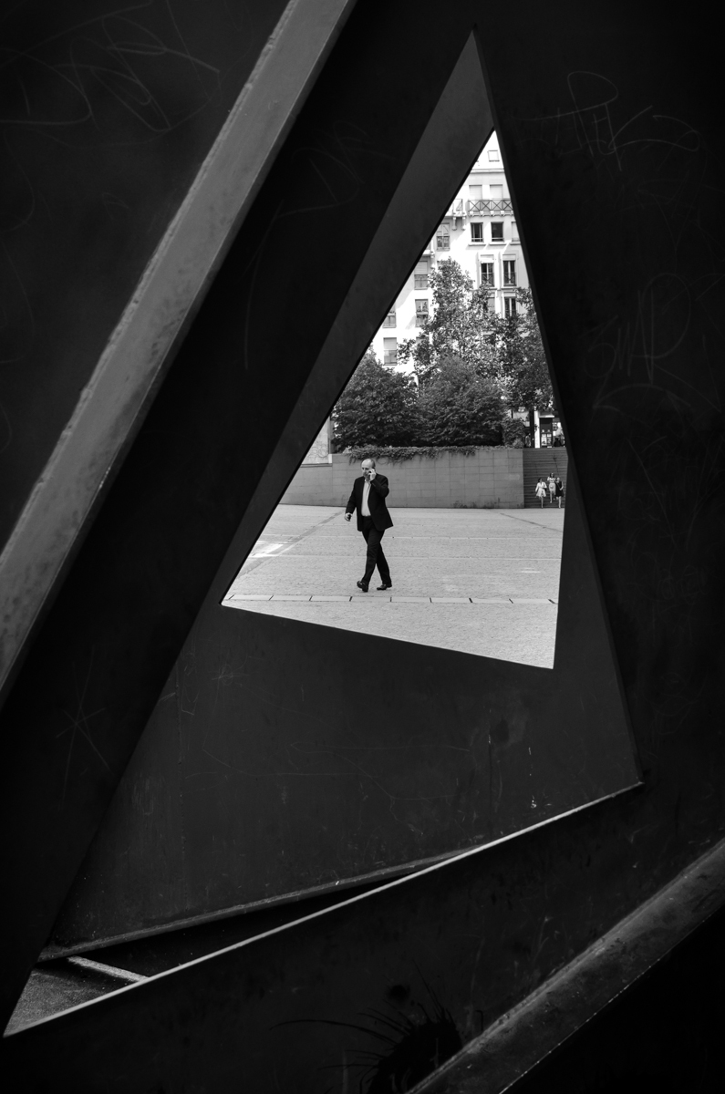 Das ist so gesehen nichts besonderes. Warum auch immer, sehr viele Street Photographer nutzen Schwarzweiß als Stilmittel. Vermutlich, um den dokumentarischen Stil zu unterstreichen. Die Grenze zwischen Dokumentarischem, Schnappschüssen und Kunst ist dabei weitgehend fließend, aber es gibt sie. Und in diesem Spannungsdreieck kann man die Inszenierung auch deutlich in Richtung Kunst verschieben. Das beweist zum Beispiel Mahmoud Merjan mit seiner Serie „Perfect Strangers“.
