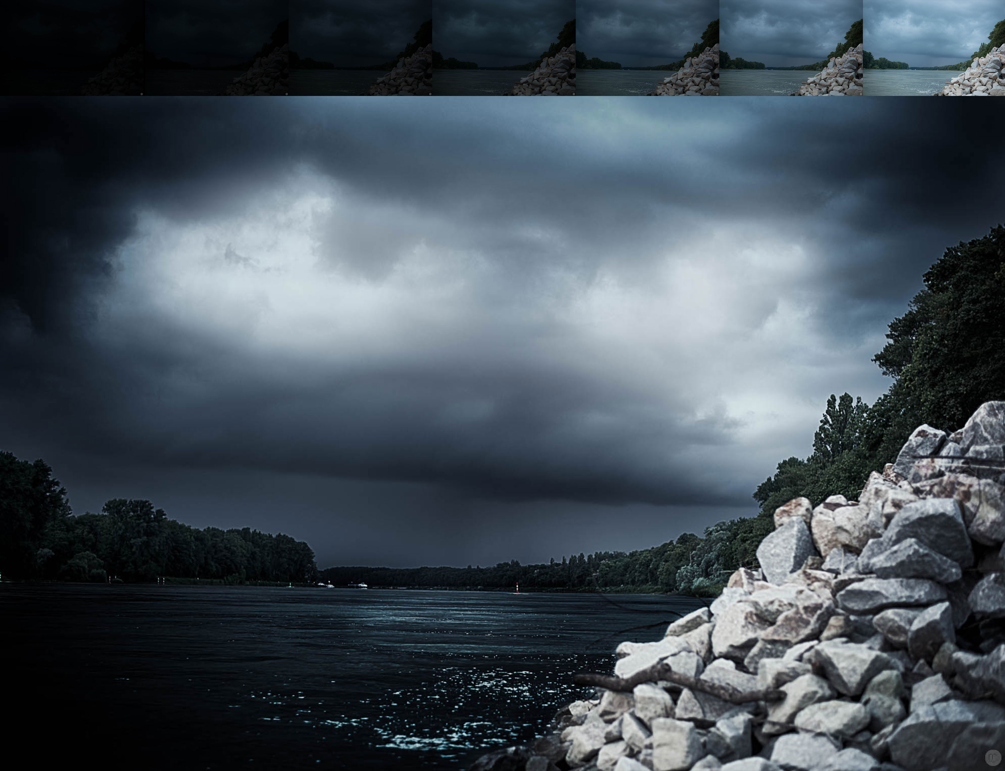 Trotz des dramatischen Motivs ist es absolut gleichmäßig belichtet. Okay, ich habe eine Vignette drum gelegt, um es noch dramatischer zu machen und darum sind auch äußerst schwarze Bereiche im Bild. Aber weder am unteren noch oberen Ende des Dynamikumfangs wird beim HDR-Bild die Skala gesprengt. Der Himmel enthält unheimlich viele Lichtabstufungen und nirgendwo auf den Steinen sind ausgerissene Lichter zu finden. Ein typisches Anzeichen für HDR-Bilder sind die Bereiche, in denen sehr dunkle Elemente auf sehr helle treffen. Dort entsteht – wenn man es nicht gut macht – eine Art Leuchtkante. Achtet mal an den Rändern der Bäume drauf, man kann sie ein wenig erkennen.