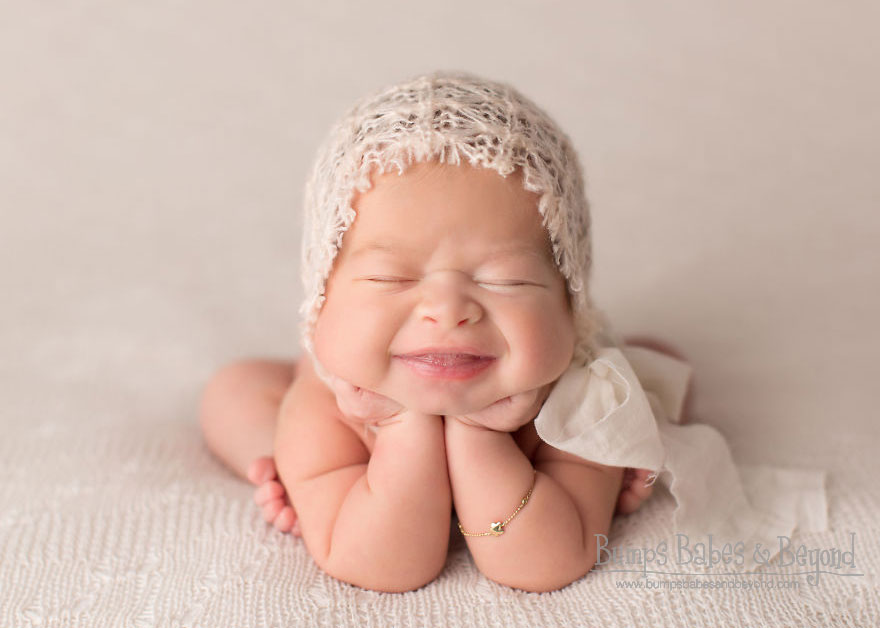 Etwas, für das Ford bekannt ist und eines ihrer Spezialgebiete ist die Fotografie von Neugeborenen. Sie hat sich darauf verlegt, etwas recht seltenes und flüchtiges zum Motiv zu machen: wenn die Babys lächeln.