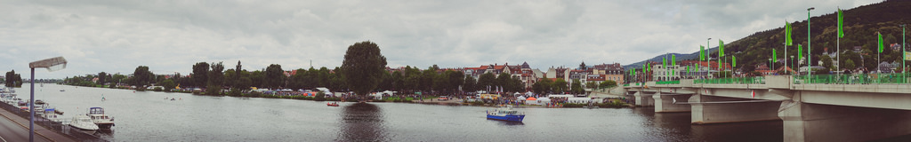 Die eigentliche Wahrheit sieht aber anders aus. Ihr betrachtet da das Neckarufer in Heidelberg. Darauf findet ein großes Fest unter dem Titel „Lebendiger Neckar“ statt. Bevor ich darüber schlenderte, nahm ich spontan drei Fotos auf. Mit ihnen testete ich die in Lightroom 6 integrierte Panorama-Funktion.