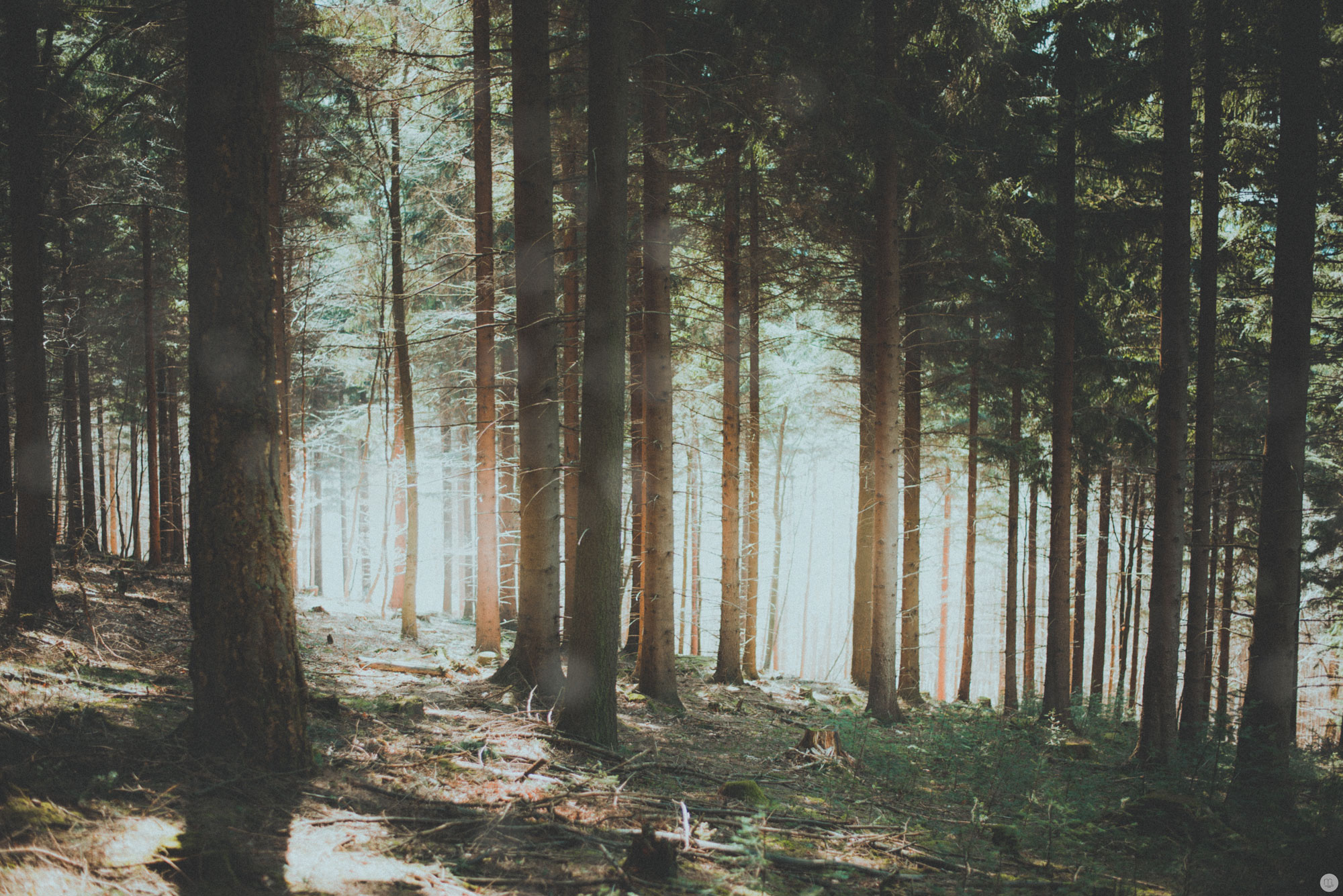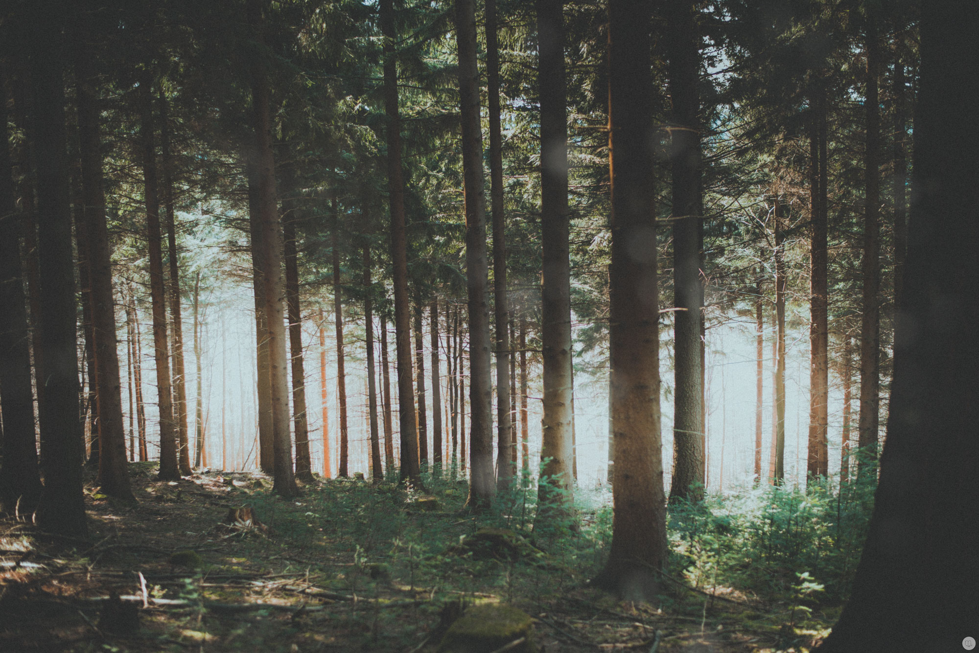 Alter Wald in Retro-Farben.